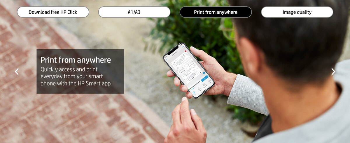 - 使用 HP Smart 應用程式,隨時隨地執行列印並管理繪圖機。
